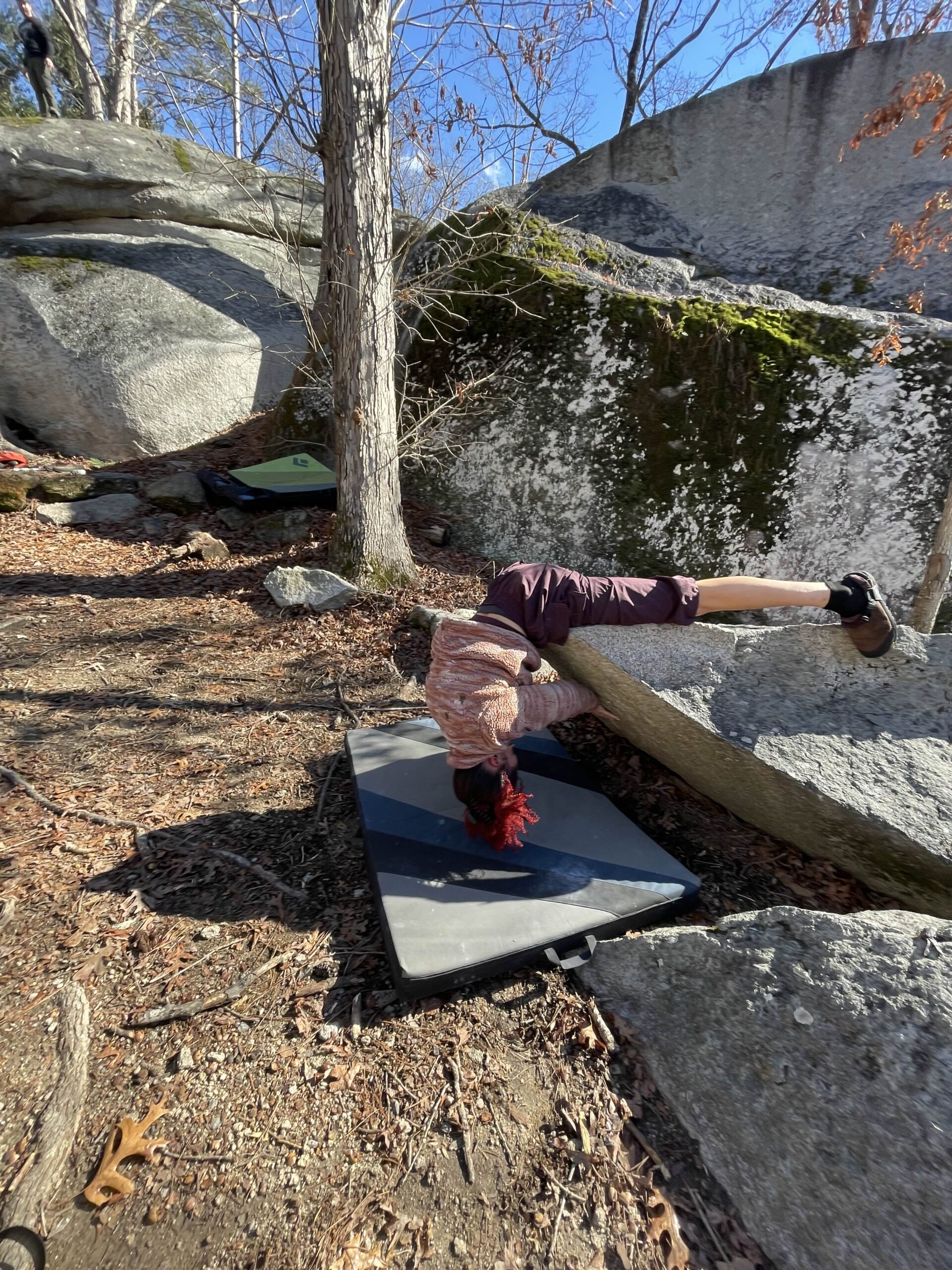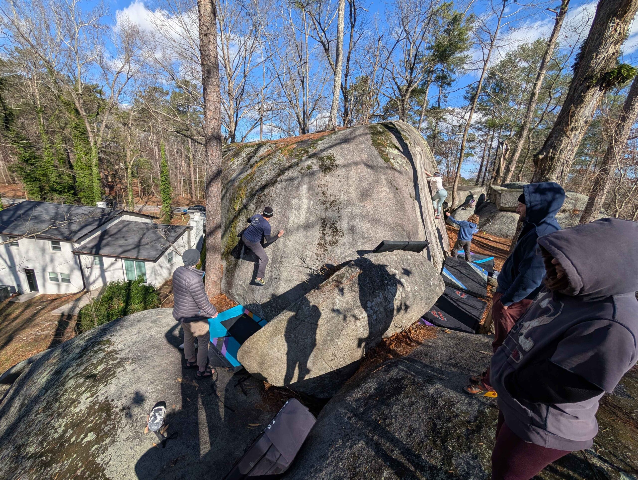 For our first trip of the year the Atlanta Climbing Club visited Boat Rock in West Atlanta. A popular bouldering area, it held one of the first bouldering competitions in the U.S. back in 1985 and has some classic problems. It was a beautiful day outside with lots of friction work, and some goofing off on the ‘alligator challenge’.