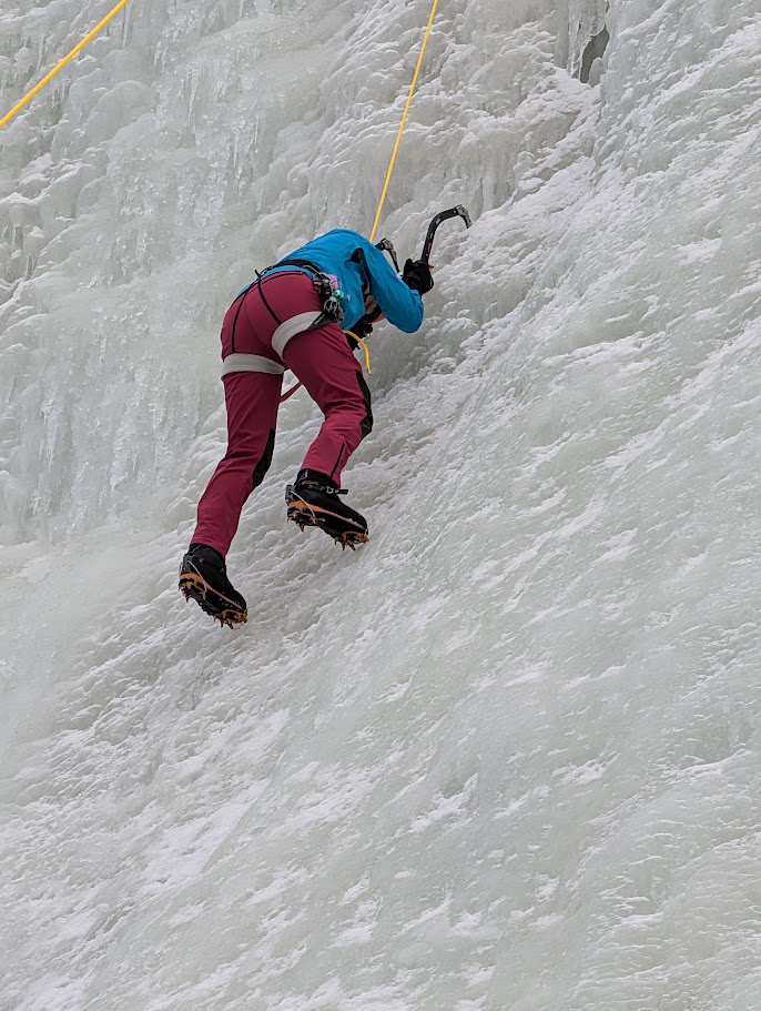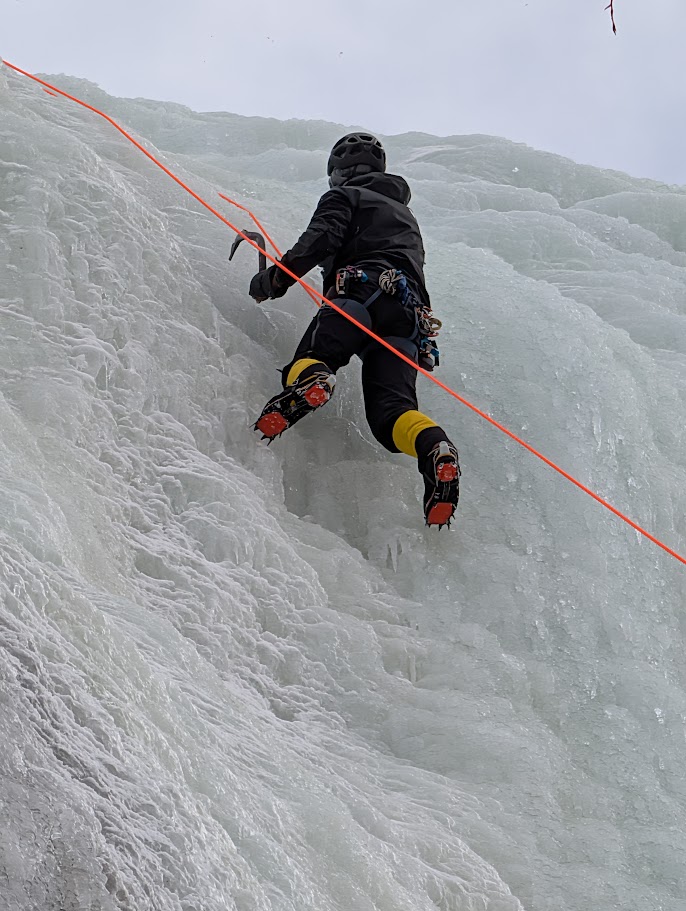 2 lines where lead by Jon Elwell, a WI2+ gully and WI3 line.